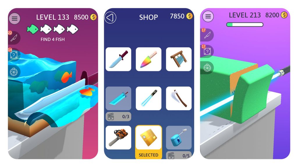 پس از پایان هر مرحله تعدادی سکه ( واحد پول درون بازی ) دریافت خواهید کرد که می توانید با استفاده از آن لوازم برش مختلفی را خریداری کرده و بریدن اجسام به کمک آن را تجربه کنید
